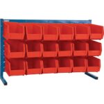 All-welded louvered bench rack, Provides tool and storage for assembly or repair operations when combined with plastic parts bin, Durable Kleton blue enamel finish, Free standing unit made of 1″ square tube frame, May be placed on any flat surface near a worksite without the need for bolts or fasteners, Includes: (18) Bins (CF832)