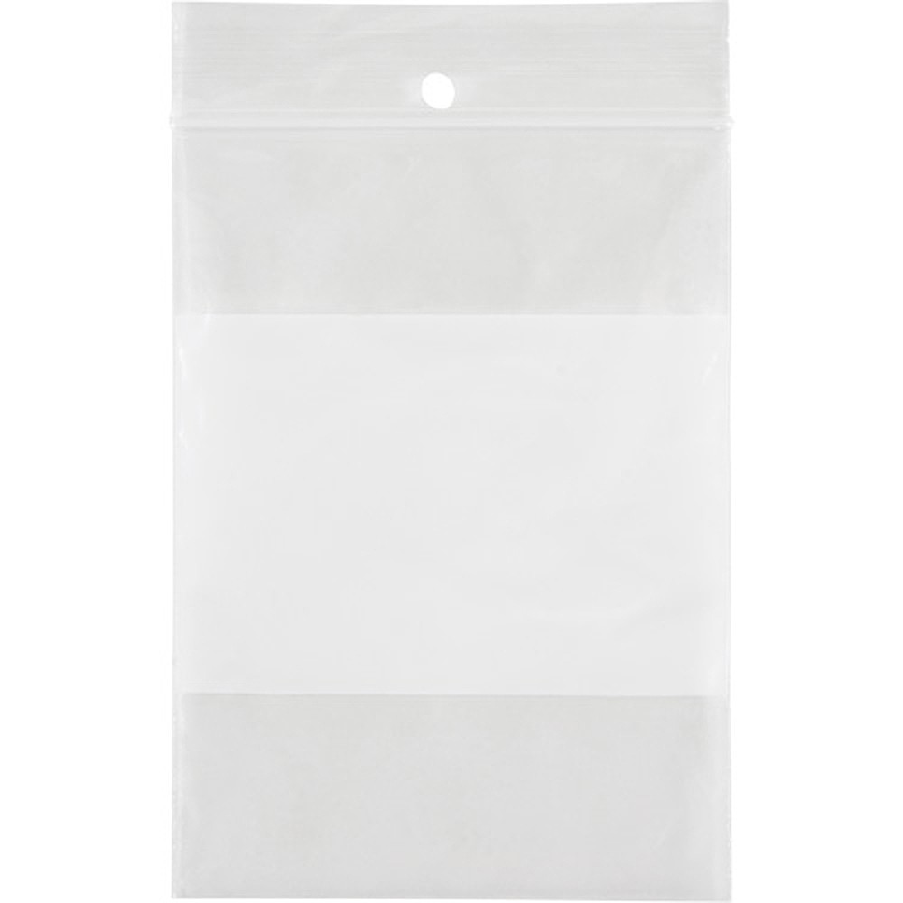 Hang-holes allow users to hang on hooks or pegs, Identify contents by writing on the white block area, Zippered opening allows for easy opening and resealing