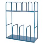All-welded steel construction, ready to use, 20″ high dividers on the bottom with 10 1/2″ space between the dividers, 14″ high dividers on the top with 8 1/2″ space between the dividers, Durable Kleton blue enamel finish