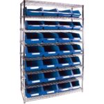 Adjustable chromate wire shelves, Wire shelving resists corrosion and provides greater visibility to stored parts, Wire shelves prevent build up of dust and dirt, Bins are unaffected by oil, alkaline and most acids, Ideal in production or for parts storage, Assembly required, Stationary unit’s total capacity should not exceed 2000-lb., NSF certified