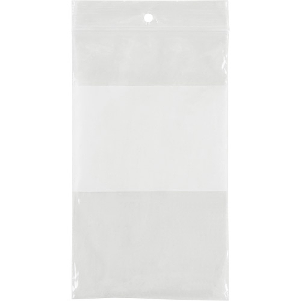 Hang-holes allow users to hang on hooks or pegs, Identify contents by writing on the white block area, Zippered opening allows for easy opening and resealing