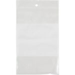 Hang-holes allow users to hang on hooks or pegs, Identify contents by writing on the white block area, Zippered opening allows for easy opening and resealing