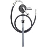 FM approved pump with 8′ antistatic hose, nozzle, flame arrestor and vacuum breaker, For use with class 1 and class 2 flammable and combustible liquids such as gasoline, alcohols, and other solvents, Fits 15 to 55-gallon drums with a 2″ bung adaptor, WARNING! Chemical compatibility of a drum or barrel pump should be checked for EACH LIQUID BY CHEMICAL NAME! Please contact your representative for chemical compatibility., Wetted components: Cast iron, steel, graphite, polypropylene, aluminum, EPDM rubber and Buna-N