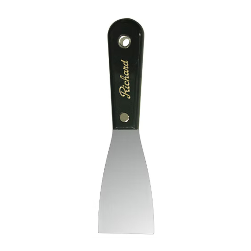 Richard Stiff Putty Knife, 2 in W Blade, HCS Blade, Lacquered/Mirror Polished Blade, Polypropylene Handle