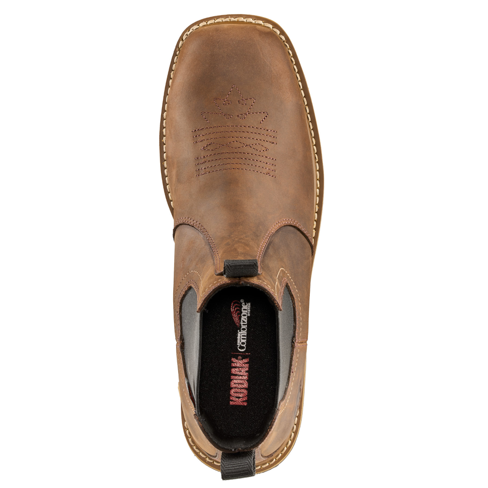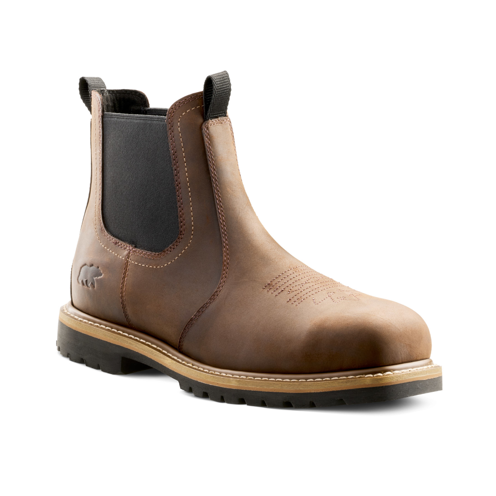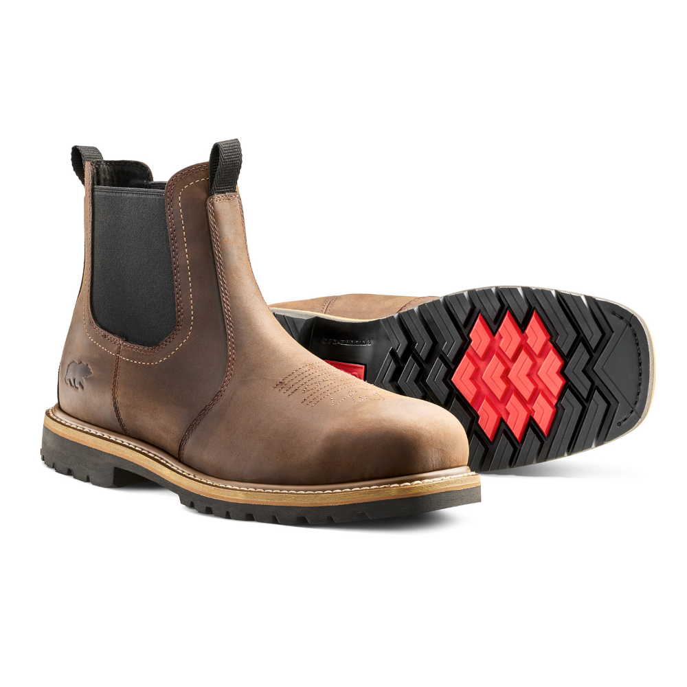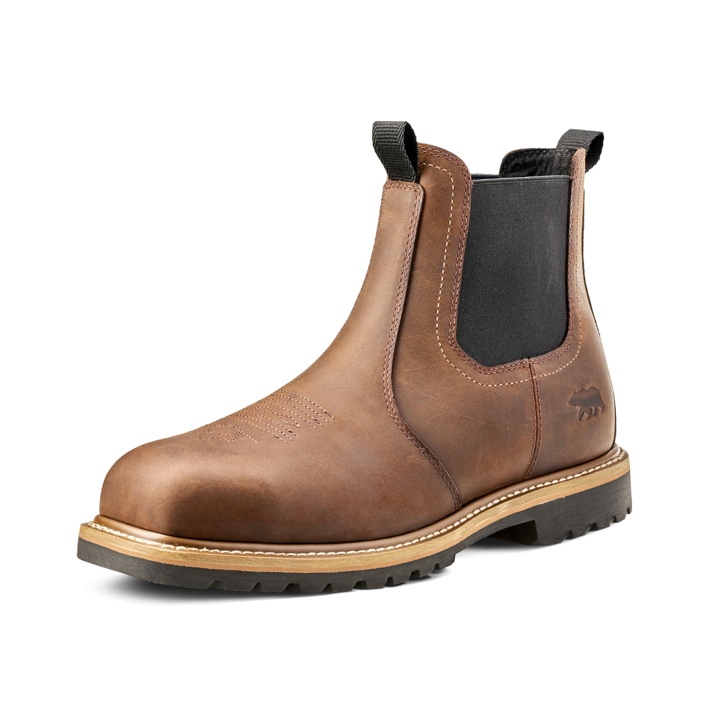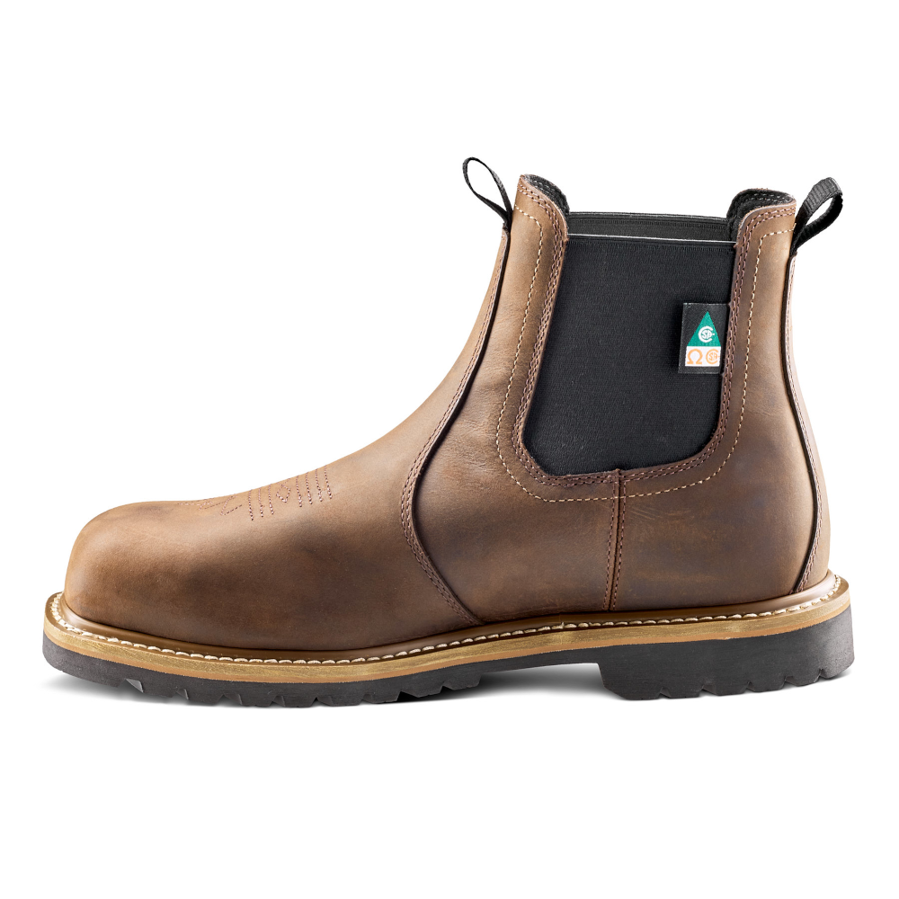 Built for tough work environments, this rugged, waterproof leather pull-on Chelsea boot is barnyard resistant and ready for long days on the job. Water-resistant double stretch gore panels and dual pull tabs make slipping them on and off quick and easy.