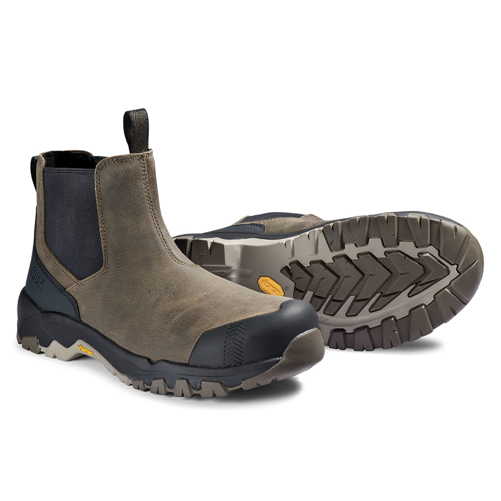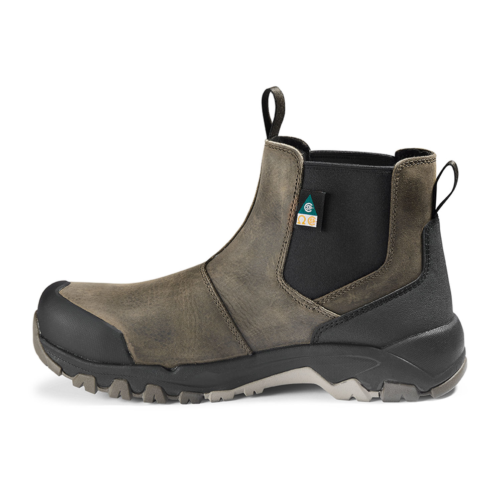 The Men’s Kodiak Quest Bound Chelsea is the ultimate pull-on work boot built to withstand the toughest worksites. Waterproof full grain leather, a TPU molded toe guard, and abrasion-resistant heel guard overlay ensure maximum durability and protection. The KODIAK® SOS Smell Out Science® odour control technology keeps your feet smelling fresh, while the Comfortzoneâ„¢ footbed with OrthoLite® comfort foam and compression molded EVA midsole offer superior shock absorption and all-day comfort. Plus, with ROCKFIBRE® METAL FREE Technology you can breeze through worksite metal detectors. The oil-, heat-, and slip-resistant Vibram® TC4+ rubber outsole ensures excellent traction on any surface, making them the perfect choice for unforgiving worksites. CSA and ASTM approved composite toe, composite plate, ESR/EH keep you safer on the job.