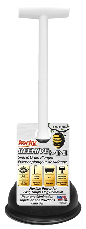Proudly designed and made in the united states, the BEEHIVE Mini sink and drain plunger offers flexible power for fast, tough clog removals. Designed to eliminate clogs in: sinks, with or without garbage disposals, shower drains, tubs, bathroom and utility sinks. The t-handle and flexible, beehive shape head design, allow for an optimum grip and powerful plunge. The plunger head is designed to seal better while requiring less effort to plunge. For best results, we recommend covering other sink openings or vents.