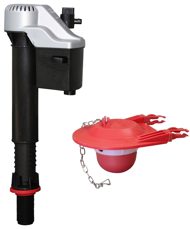 Korky QuietFILL Platinum Fill Valve and Flapper, Nominal Size: 3 in, Float Diameter: 8-1/2 to 14 in, Adjustable: Yes, Float Material: Rubber, Red, Suitable for: American Standard Cadet 3, Kohler Cimarron Class Five and Six, Kohler, Wellworth, TOTO Drake Toilets
