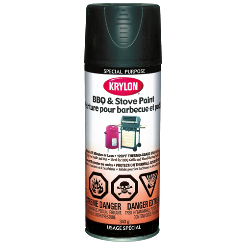 Keep your grill looking like new with this Krylon BBQ and Stove Spray Paint. The durable finish with Thermo-Guard protection withstands temperatures up to 1200°F (458°C) intermittently and 600°F (315°C) continuously. It’s ideal for restoring and protecting metal surfaces such as BBQ grills and wood-burning stoves. The aerosol paint dries to the touch in just 15 minutes. | Krylon BBQ and Stove Spray Paint 340g- Black 41618 Krylon | BBQ And Stove Spray Paint 340G- Black .