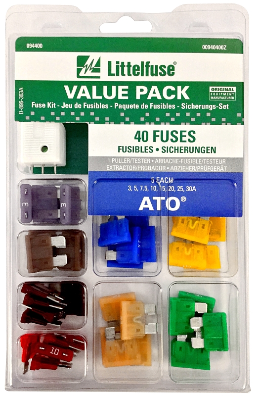 The Littelfuse value packs contain a complete assortment of OEM fuses. Value packs give you the tools for the protection you need when and where you need it. The ultimate fuse kit for home and repair shop comes in a clear plastic, reusable package.