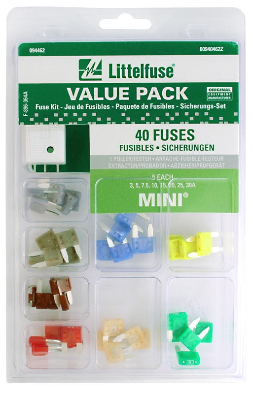 The Littelfuse value packs contain a complete assortment of OEM fuses. Value packs give you the tools for the protection you need when and where you need it. The ultimate fuse kit for home and repair shop comes in a clear plastic, reusable package.