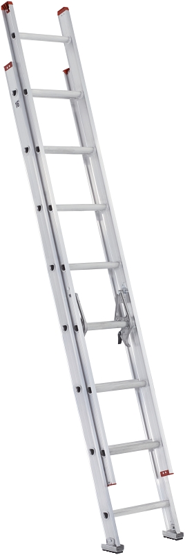 Louisville Extension Ladder, 200 lb Weight, D-Shaped, Serrated Rung, Standing Height: 13 ft, 16 ft Opening Height, 3 ft Extension Length, 15 in Base Width, Foot Material: Vinyl, Aluminum