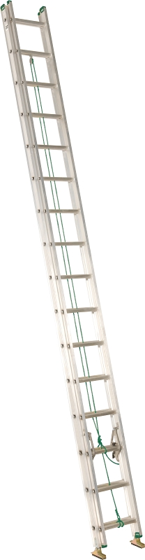 Louisville Extension Ladder, 32 ft, 225 lb Weight, Rung Type: D, Extension Length: 29 ft, Base Width: 17 in, Foot Material: Vinyl, Aluminum