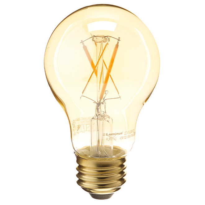 General purpose lighting, ideal for ceiling fans, table lamps and wall sconces. A 4.5 W LED light bulb replaces a 40 W incandescent light bulb.  Colour temperature (Kelvin): 2700 K (warm white). Average life of 15,000 hours. Beam angle of 300°, commonly used for general purpose lighting. Colour rendering index (CRI) greater than 80Usage: indoor or outdoor (in a dry location). c. Energy Star and cUL certified. RoHS compliant and mercury-free | Luminus 40 W A19 EQ Warm White Dimmable LED Light Bulb  PLF1142 Luminus | 40 W A19 Eq Warm White Dimmable LED Light Bulb.