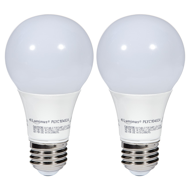 This set of 2 Luminus 6-watt A19 LED bulbs is a great lighting solution for your living space. These durable LED bulbs have a 200-degree beam angle, a 15,000-hour lifespan and daylight (5000K) light. They produce the same luminous flux as a traditional 40-watt bulb to create a bright and welcoming atmosphere. 3 year warranty.