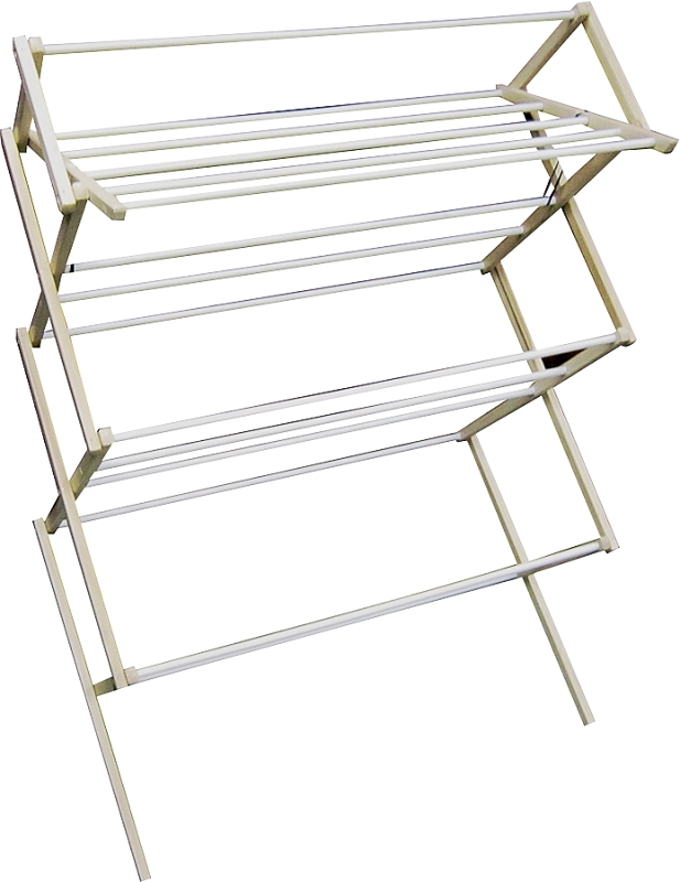 Sturdy construction for heavy-duty use. 15 Snag-Free extra-large coated rungs. Extra-large polished side frames. Staggered rung construction keeps top clothes from dripping on bottom clothes. Total drying space of 41 ft.