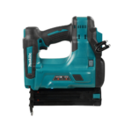 The Makita DBN500Z 18G Cordless Brad Nailer features a robust DC motor and a driving mechanism for durability and performance. It offers reduced reaction force for better control and less fatigue, with an anti-dry fire mechanism to prevent wear. The low-profile contact tip ensures precision, and rubber bumpers protect materials. It includes an LED job light, battery protection system, and on-board depth control. This tool supports both bump and sequential fire modes, weighs 6.4 lbs, and is compatible with 18V Li-Ion batteries. The magazine holds 100 nails, making it ideal for various woodworking tasks.