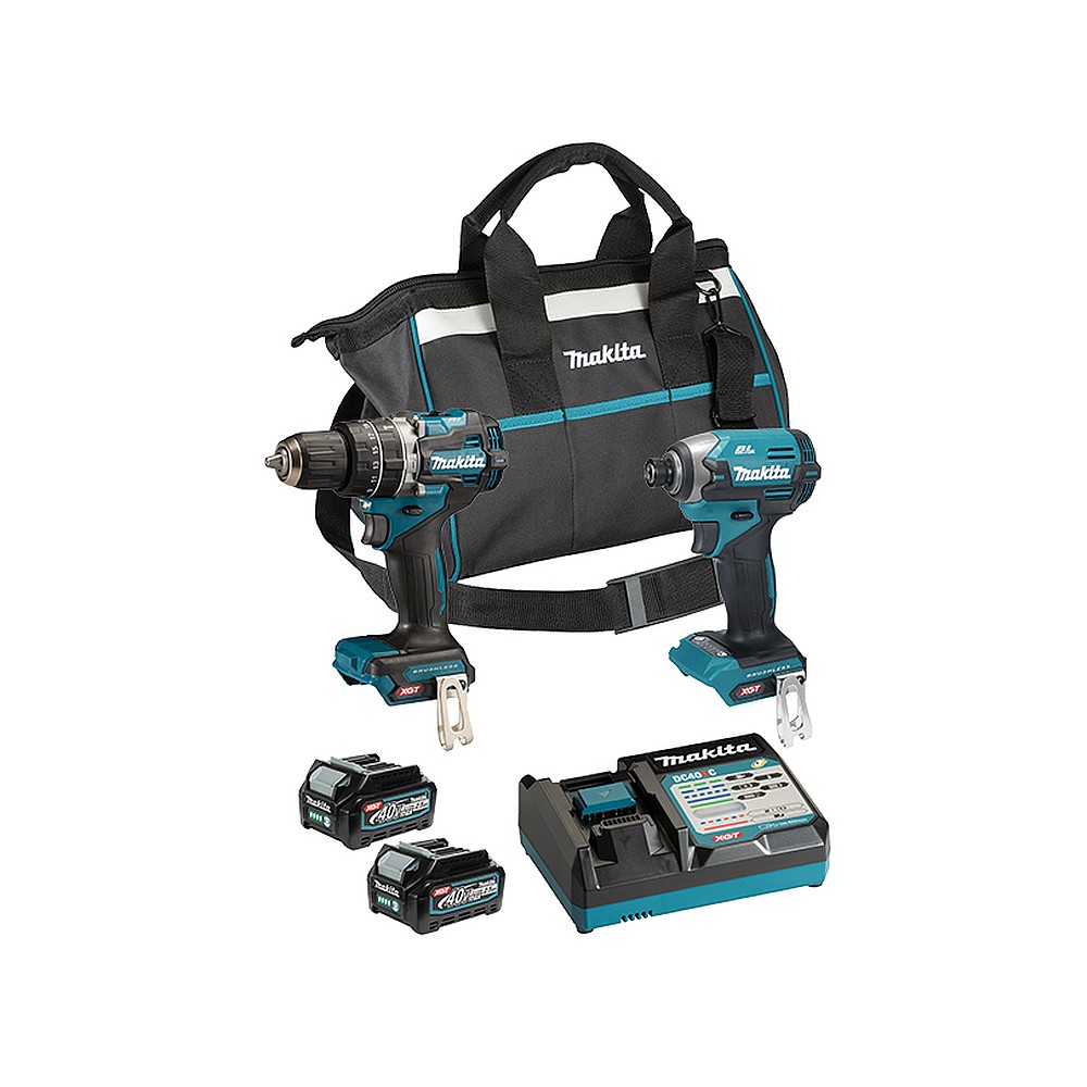 Includes: 1/4″ Cordless Impact Driver with Brushless Motor (TD003GZ), 1/2″ Cordless Hammer Drill / Driver with Brushless Motor (HP002GZ), Two 40V Max (2.5Ah) Li-Ion Battery BL4025 (BL4025), Fast Charger (DC40RC), Tool Bag (832319-7)