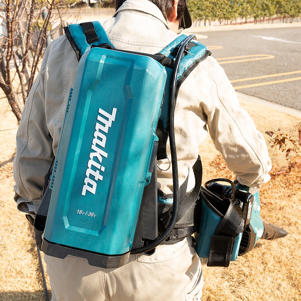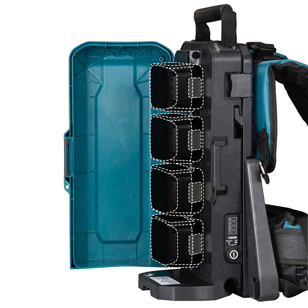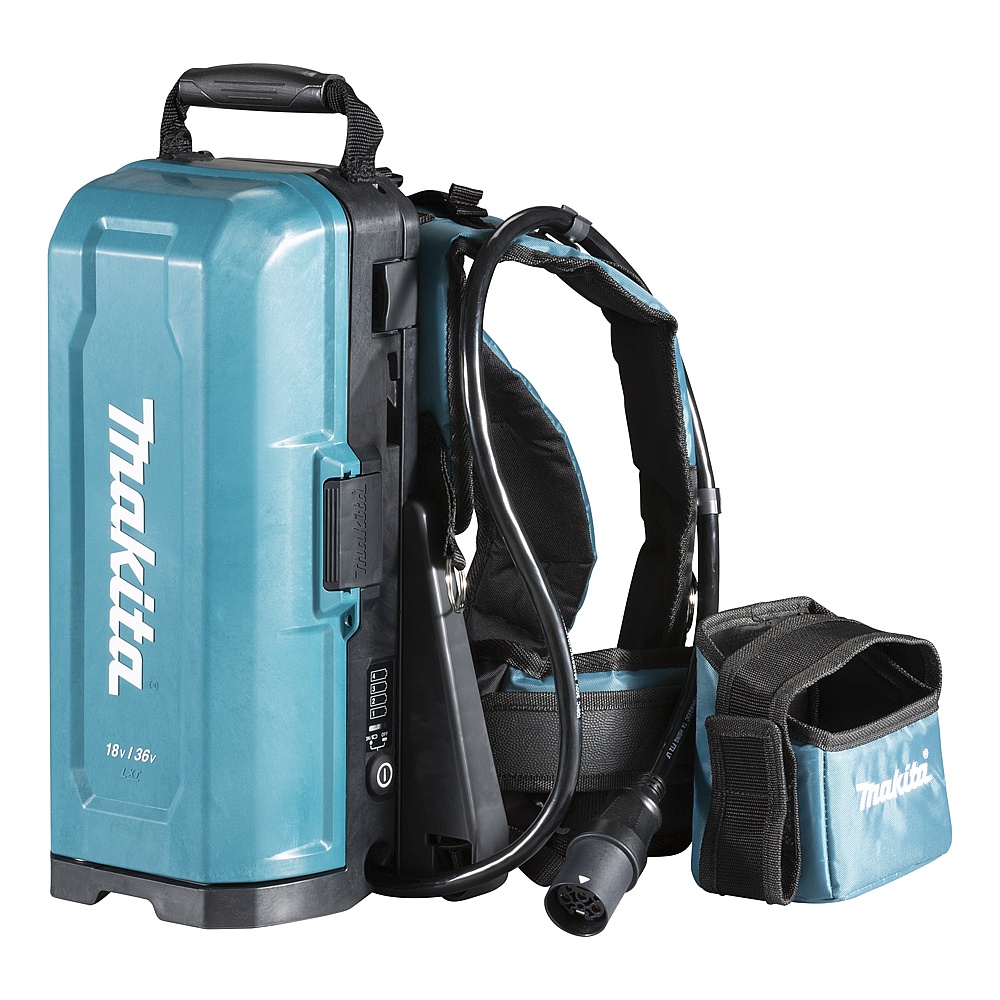 The Makita® 18V LXT® and LXT® X2 Portable Backpack Power Supply is a portable power supply unit. The backpack utilizes four lithium-ion batteries to provide 4x the run time when used with Makita® 18V LXT® Cordless Products and double the run time when used with Makita® 18V X2 LXT® Cordless Products. The battery box can be detached from the harness for use as a stationary power supply. The backpack is connector cord compatible with the 18V LXT® Adapter or 18V X2 LXT® Adapter (191A53-7 and 191A52-9, sold separately).