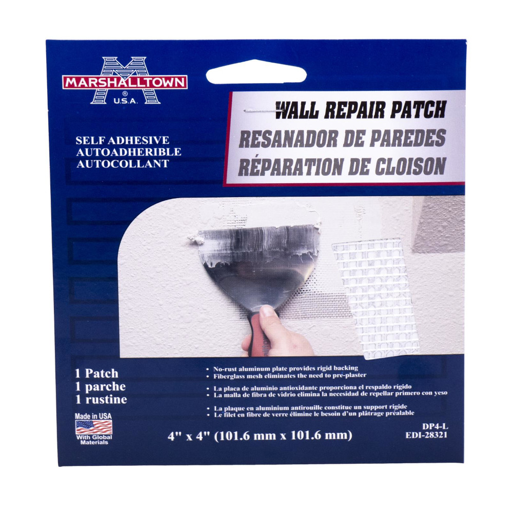 No-rust aluminum plate provides rigid backing. Self-adhesive patches. Fiberglass mesh eliminates the need to pre-plaster.