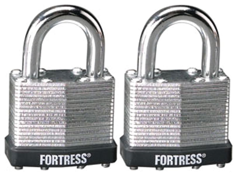 Security for basic applications. Laminated steel case with 4-pin tumbler mechanism. Dual-locking system independently locks each shackle leg for added strength. Plastic bumper protects against marring and scratching. Hardened steel shackle. Two keys included. 1803 has 1-1/2 in wide case, 1/4 in Dia shackle and 3/4 in horizontal shackle clearance. 1805 has 2 in wide case, 5/16 in Dia shackle and 1 in horizontal shackle clearance. 1807 has 1-1/8 in wide case, 3/16 in Dia shackle and 9/16 in horizontal shackle clearance. Carded.