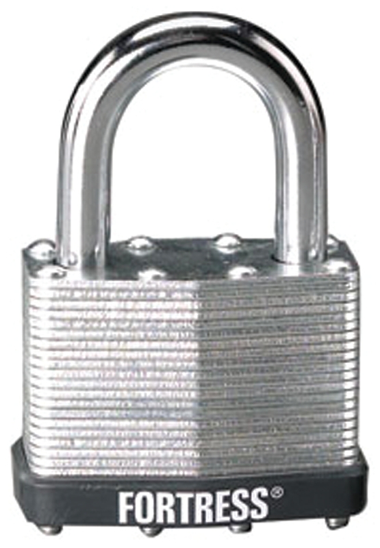 Security for basic applications. Laminated steel case with 4-pin tumbler mechanism. Dual-locking system independently locks each shackle leg for added strength. Plastic bumper protects against marring and scratching. Hardened steel shackle. Two keys included. 1803 has 1-1/2 in wide case, 1/4 in Dia shackle and 3/4 in horizontal shackle clearance. 1805 has 2 in wide case, 5/16 in Dia shackle and 1 in horizontal shackle clearance. 1807 has 1-1/8 in wide case, 3/16 in Dia shackle and 9/16 in horizontal shackle clearance. Carded.