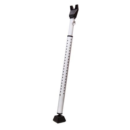 The Master Lock No. 265D security door bar is made of rugged 20 gauge steel construction to resists forced entry through doors and sliding patio doors. The bar adjusts from 27-1/2 inch (70 cm) to 42 inch (1.1 m) for application flexibility. The pivoting ball joint assures full contact with floor and padded foot provides sure grip without scratching.