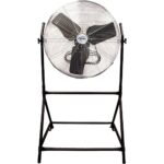 120V, Cart mounted fan for increased air circulation and optimal mobility, Can be tilted/ positioned to maximise ventilation, Cart and frame configuration provide stable quiet operation, CFM: 10760 (high), 7770 (medium) 7040 (low), 9.8′ SJT power cord, Open motor