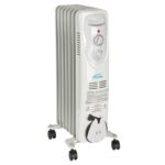 7-fin, oil-filled heater, Three heat settings provide full comfort and efficient operation, Adjustable thermostat, Built-in over heating protection, Tip-over safety protection