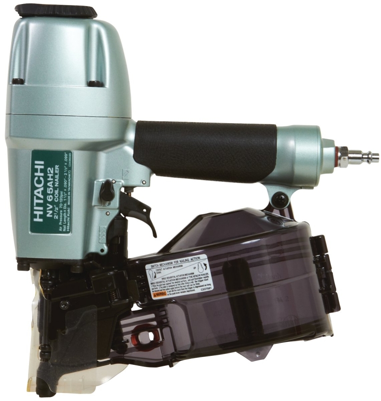 The coil siding nailer offers the precision, power and features pros demands for applying siding, sheathing, decking and fencing. The first nail gun, using air pressure to propel a nail, was first introduced in the 1950s to increase the speed of sheathing and sub-floors for house construction. These days, siding nailers are common tools of professional construction professionals. The Metabo HPT Siding Nailer is capable of driving nails as large as 2-1/2 x 0.099 in at a rate of 3 per second, the NV65AH2 is both powerful and efficient. With added features like a selective actuation switch, side-load tilt bottom magazine and repositioned depth of drive adjustment dial, this professional Siding Nailer gets even better. Additional features such as the adjustable air deflector, no-mar nose cap and plastic shield add convenience and the ability to use both wire or plastic sheet nails creates flexibility.
