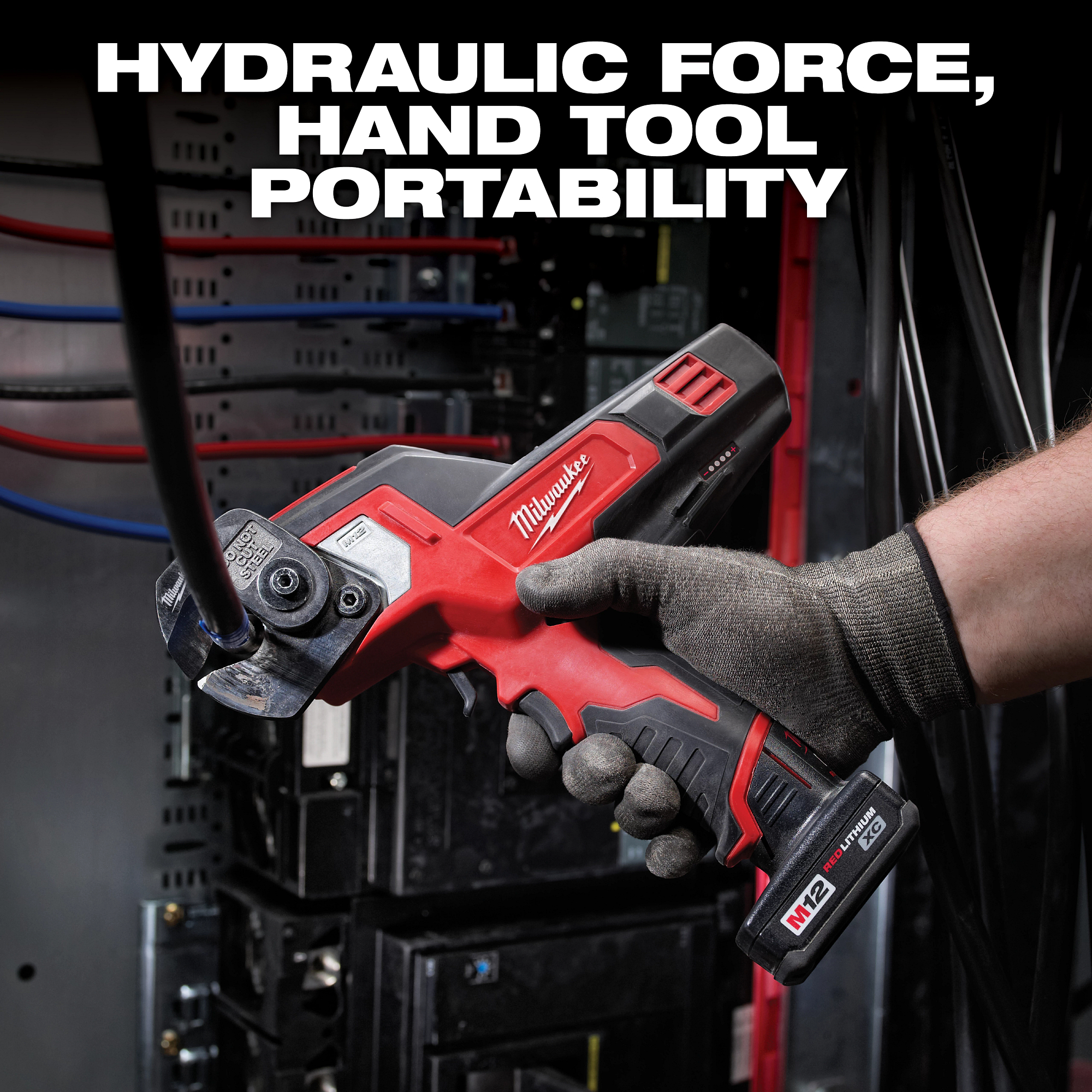 Milwaukee® Tool is bringing you more power in less space with the new M12™ 600 MCM cable cutter. Using a break-through powered ratcheting mechanism and superior blade geometry, it cuts through large cables with ease leaving a clean, installation ready cut. And the compact size and scissor style jaws empower you to cut cable in crowded panels without looping, ratcheting or long arms, making you more productive than ever.