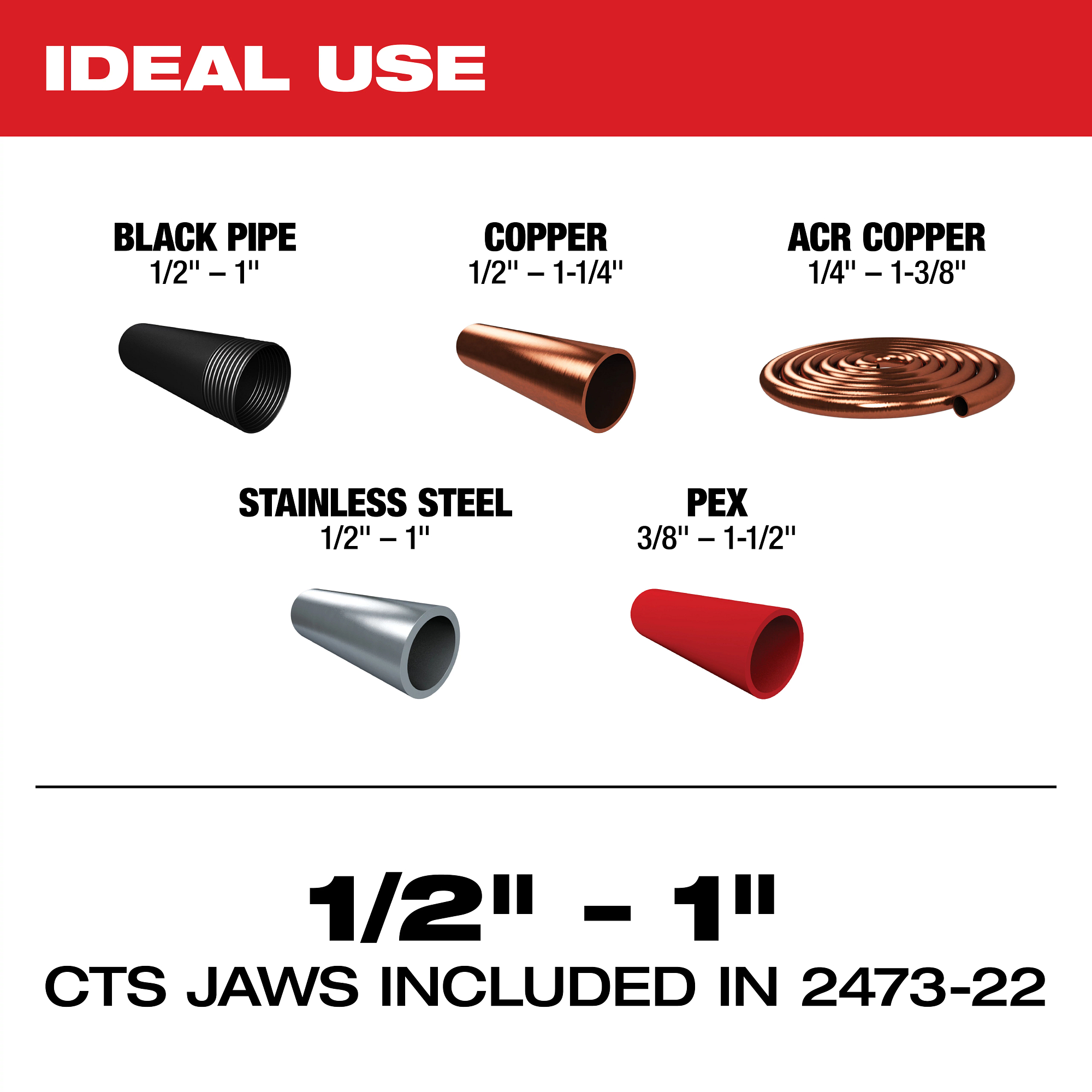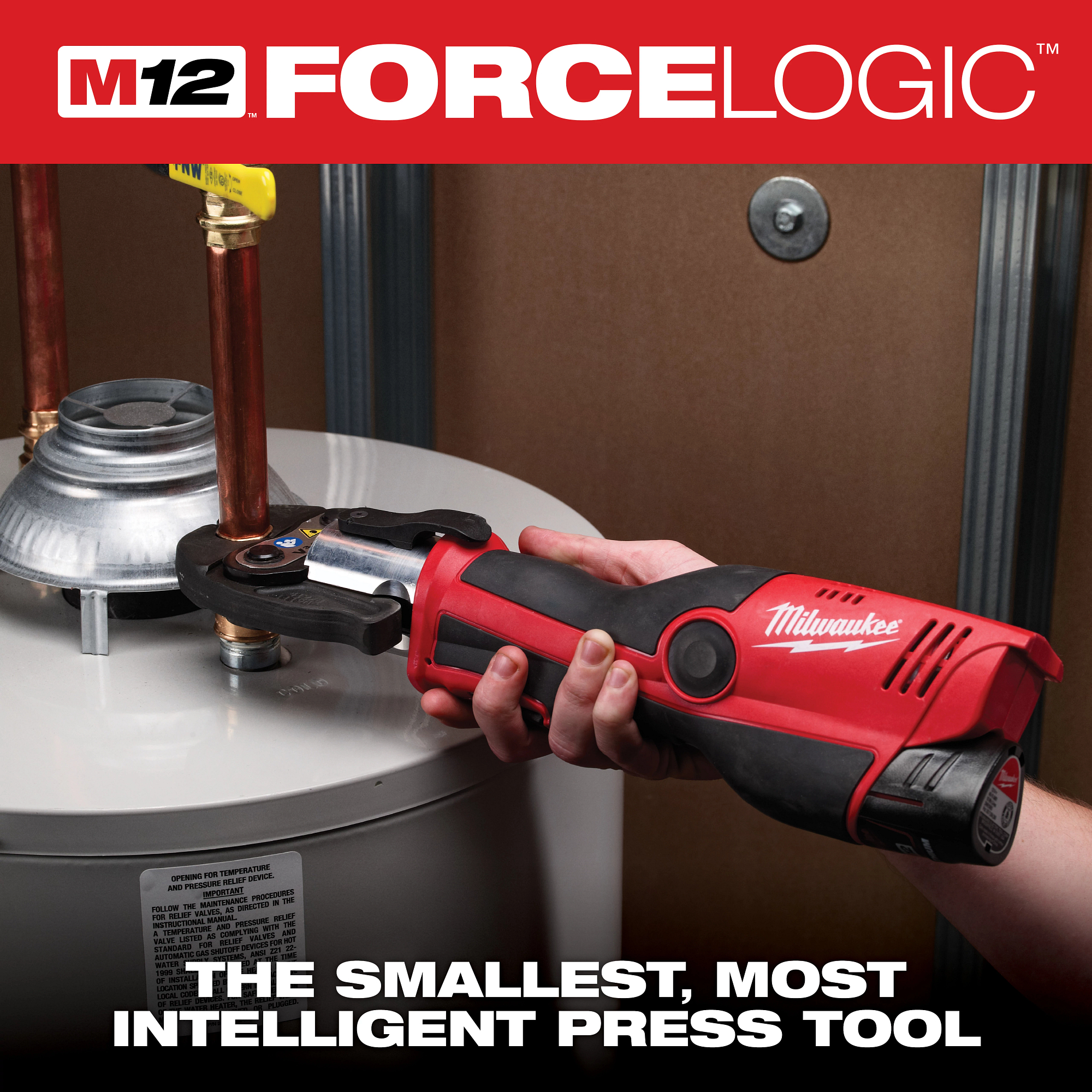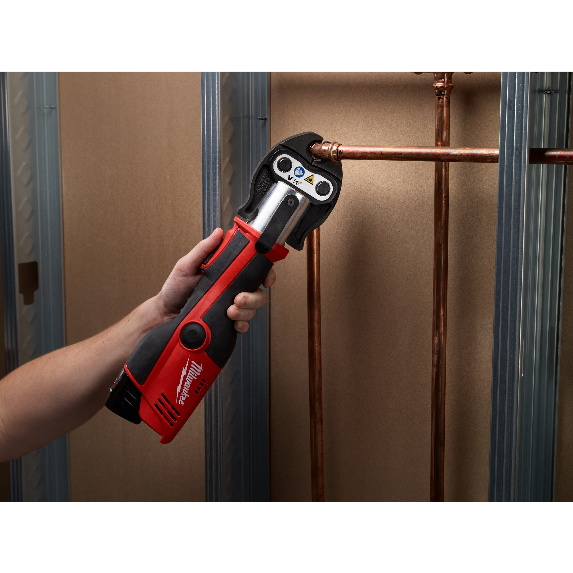 The MILWAUKEE® M12™ FORCE LOGIC™ Press Tool Kit with Jaws is the lightest press tool on the market and represents a new level in portability and accessibility around installed pipe. The M12™ press tool has a one-handed, in-line design enabling tool operation nearly anywhere an arm can fit. Built-in REDLINK™ technology enables the plumbing press tool to monitor the force output, delivering quality connections. A visual indicator alerts when a secure connection has been achieved and when the tool needs calibration. The cordless press tool features the best calibration standards, only requiring service every 32,000 crimps. This allows up to 4X more connections between services, keeping the tool on the job site up to 4X longer than competitive units. When used with Milwaukee press jaws, this tool delivers quality press connections on all major fitting brands. The FORCE LOGIC™ press tool is powered by Milwaukee’s M12™ REDLITHIUM™ batteries, allowing users to Cut, Fasten and Connect on One System. This kit includes two M12™ REDLITHIUM™ CP1.5 battery packs, 1/2 in., 3/4 in. and 1 in. copper jaws, an M12™ REDLITHIUM™ Charger, and a carrying case.