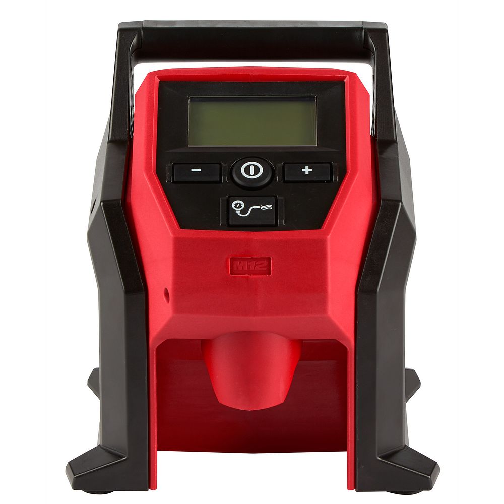 FASTEST CORDLESS TIRE INFLATOR. The Milwaukee® M12™ Compact Inflator delivers fast, accurate, easy inflation with the portability to take anywhere. With the capability to complete demanding applications like car, LT truck, and compact equipment tires, the M12™ Compact Inflator gives users ultimate power and efficiency. Rated to deliver over 120PSI, The high efficiency motor and pump top-off car tires in under 1 minute. The TrueFill™ Auto shut-off technology delivers highly accurate pressure, protects from overfill, and automatically senses speed of fill to deliver precise shut-off at the desired PSI. Additionally, the unit includes a large easy to read back-lit LCD, anti-vibration feet, and 26” inch hose with an all brass Schrader chuck.