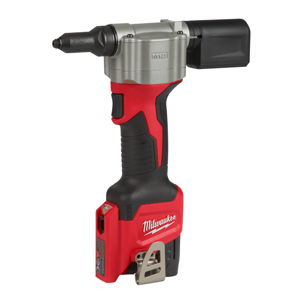 The M12™ Rivet Tool is the first cordless solution that delivers fast, easy riveting while maintaining performance, durability, and size. The 2550 can pull up to 250 3/16″ stainless steel rivets or 450 1/8″ steel rivets on one charge with a 1.5ah battery, and reduces muscle effort from a hand tool by 60%. No compressors or hoses during set up and operation makes this tool a great replacement to pneumatic products. 2X longer life over current cordless solutions delivers greater durability from common jobsite conditions and use. This is the most compact cordless rivet tool on the market, measuring only 6.5” in length allowing users more access in tight spaces. The M12 Rivet Tool is part of the M12™ battery platform, offering 150+ solutions on one battery system.