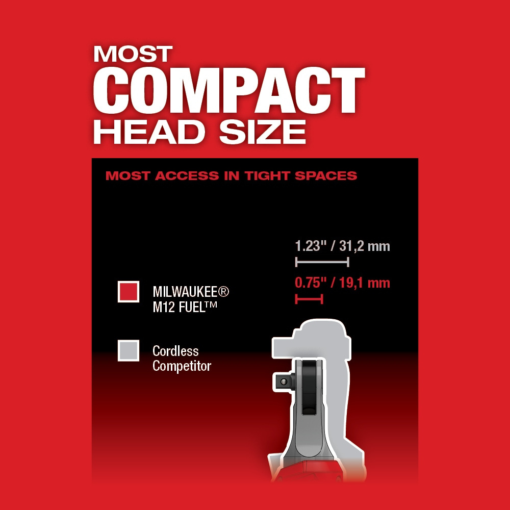 Our M12 FUEL™ 3/8″ High Speed Ratchet Kit is part of the latest addition to our best-in-class lineup of ratchets. This MILWAUKEE® cordless ratchet kit features the fastest speed while installing and removing fasteners. The most compact head size in its class gives you more access in tight spaces.