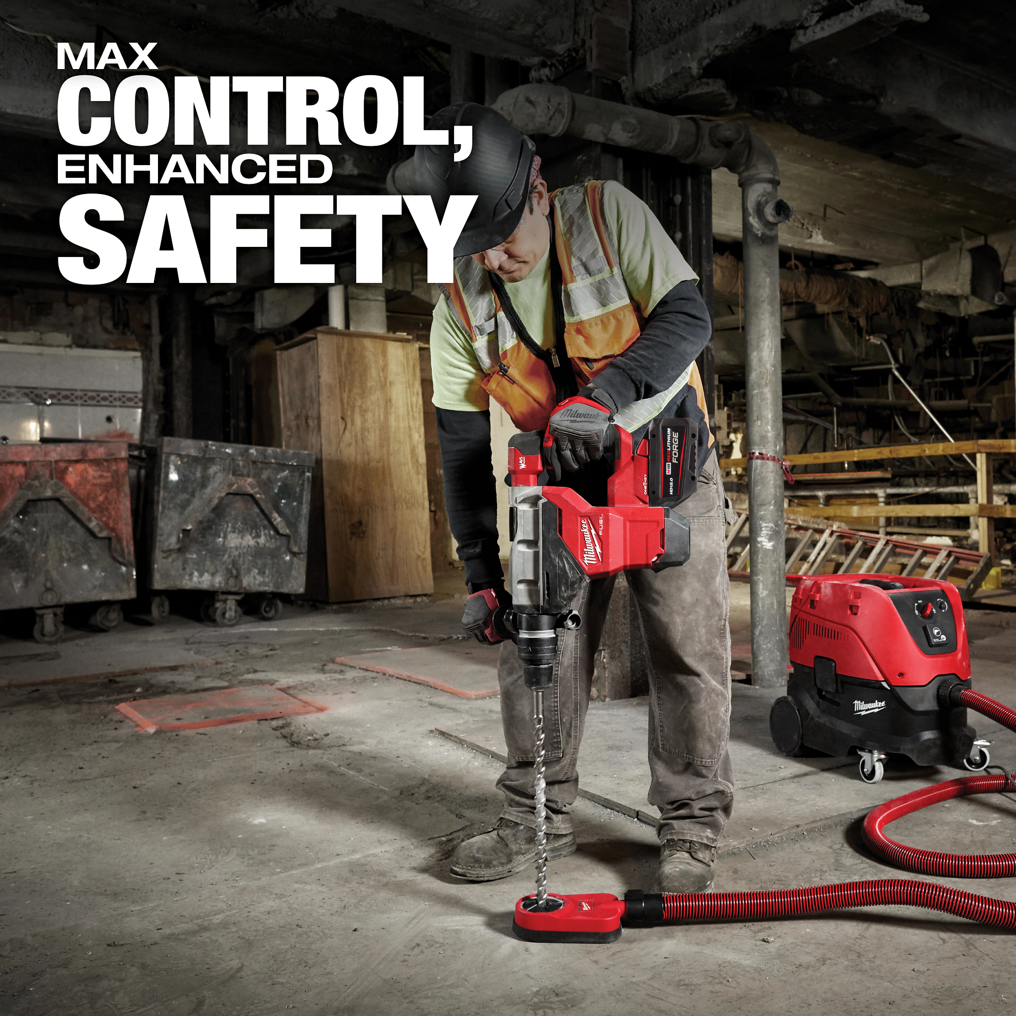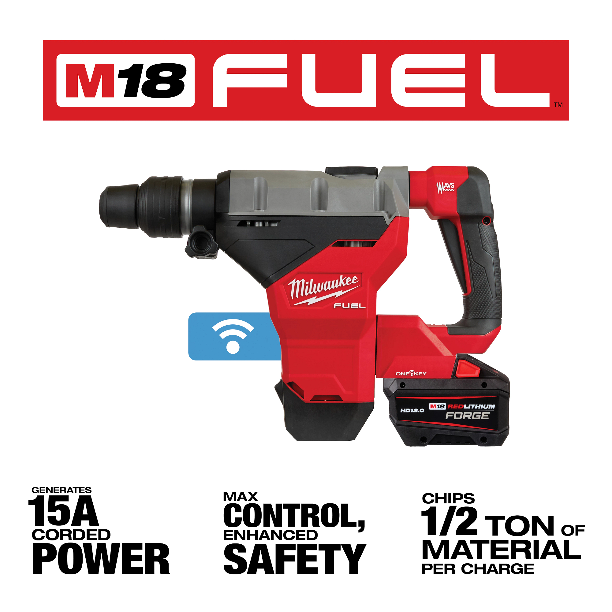 The MILWAUKEE® M18 FUEL™ 1-3/4” SDS Max Rotary Hammer w/ ONE KEY™ kit has the power of a 15A Corded Rotary Hammer with a 1-3/4″ capacity, 8.1 ft-lbs of impact energy, 380 RPM, and 2,900 BPM. The cordless rotary hammer is designed for the professional user, allowing ultimate power, control, enhanced safety, and productivity. The POWERSTATE™ Brushless Motor delivers 8.1 ft-lbs of impact energy. REDLINK PLUS™ intelligence tool technology ensures maximum performance and protects it from overload, overheating, and over discharge. The M18 REDLITHIUM™ High Output HD12.0 battery delivers unmatched run-time. It allows the SDS Max hammer drill to chip 1/2 ton of material per charge, working harder for longer. The full feature hammer delivers maximum control and enhanced safety with the AUTOSTOP™ E-Clutch. This prevents over-rotation in case the tool gets bound up while being used in drilling rebar or hard aggregate applications. Competitive tools can rotate up to 360 degrees while the Milwaukee rotary hammer will stop rotating at 45 degrees. This ensures users have more control while on the job. The cordless rotary hammer is compatible with ONE KEY™, wirelessly connecting to smartphones to track and manage the tool performance and location. ONE-KEY™ integrated tool tracking gives full visibility over how and where tools are being used across a network of jobs and users. The technology is built into the tool and not the battery, enabling tool tracking even if the battery is not charged or connected. The app will track all compatible devices within a 100 ft range of the phone, allowing missing tools to be pinpointed quicker and increase the accountability of their crew. Integrated Tool Security provides theft protection with features like tool lock-out, or the ability to hide power tools from nearby device screens. If a tool is lost or stolen, it can be rendered inoperable by sending a remote command to the tool to shut itself off the next time it comes within range of any ONE-KEY™ app. In addition to the SDS MAX rotary hammer, this kit includes one M18 REDLITHIUM™ High Output HD12.0 battery, one rapid battery charger, and a durable travel case.