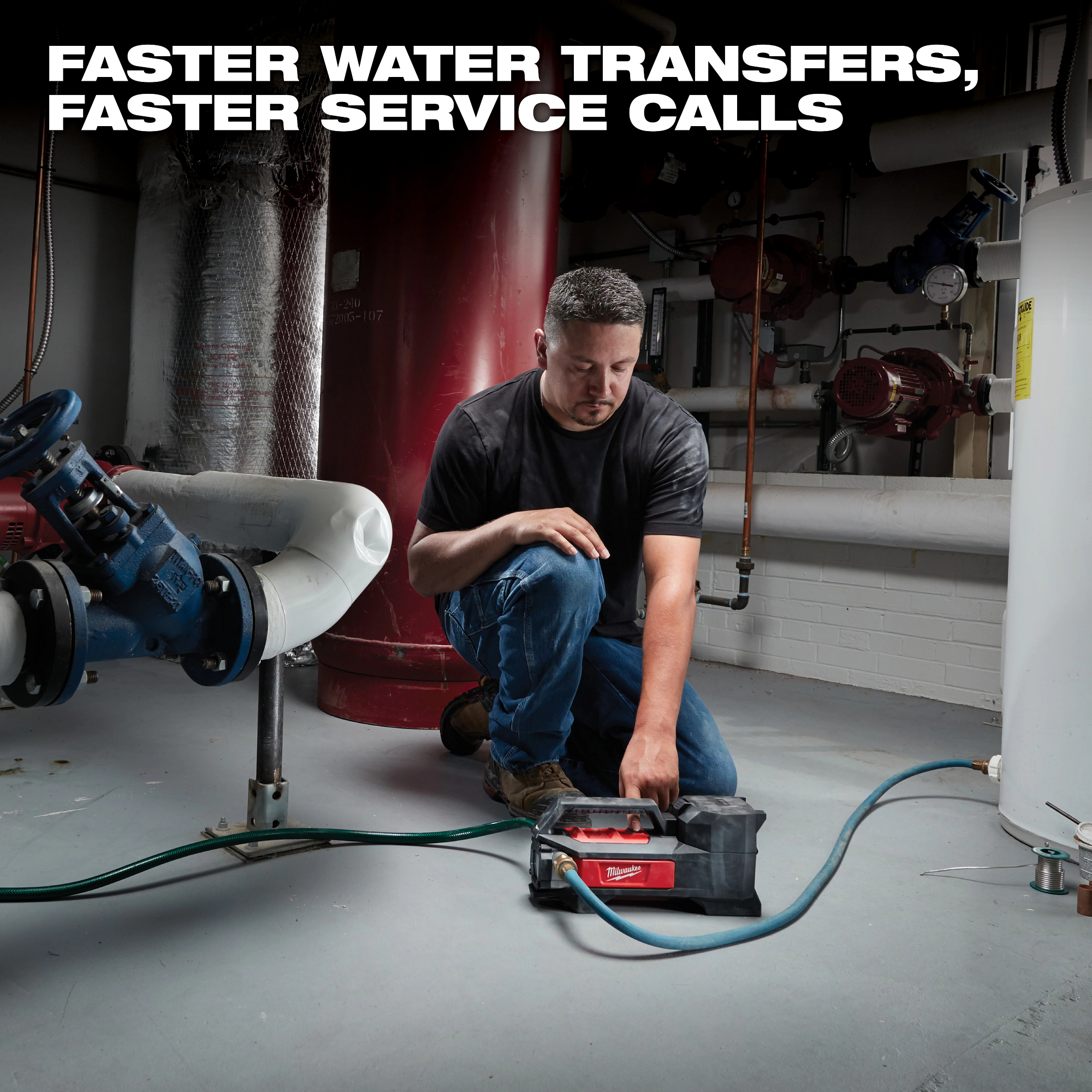 The MILWAUKEE® M18â„¢ Transfer Pump offers faster water transfers and service calls. This portable water transfer pump is the industry’s first cordless transfer pump, offering the fastest setup. With an innovative self-priming pump, professionals can connect and go quicker than ever. The Milwaukee transfer pump’s flexible impeller and powerful pump move water at up to 480 Gal. per hour, generates up to 18 ft. of lift and produces up to 75 ft. of head height. As a part of the M18â„¢ System, REDLITHIUMâ„¢ battery packs power the water transfer pump, which delivers up to 240 Gal. moved per charge on an XC5.0 battery pack. Onboard REDLINKâ„¢ Intelligence can recognize when the tool stops moving water and automatically shuts itself off to avoid dry pumping. REDLINKâ„¢ also provides optimized performance and overload protection in abusive situations.