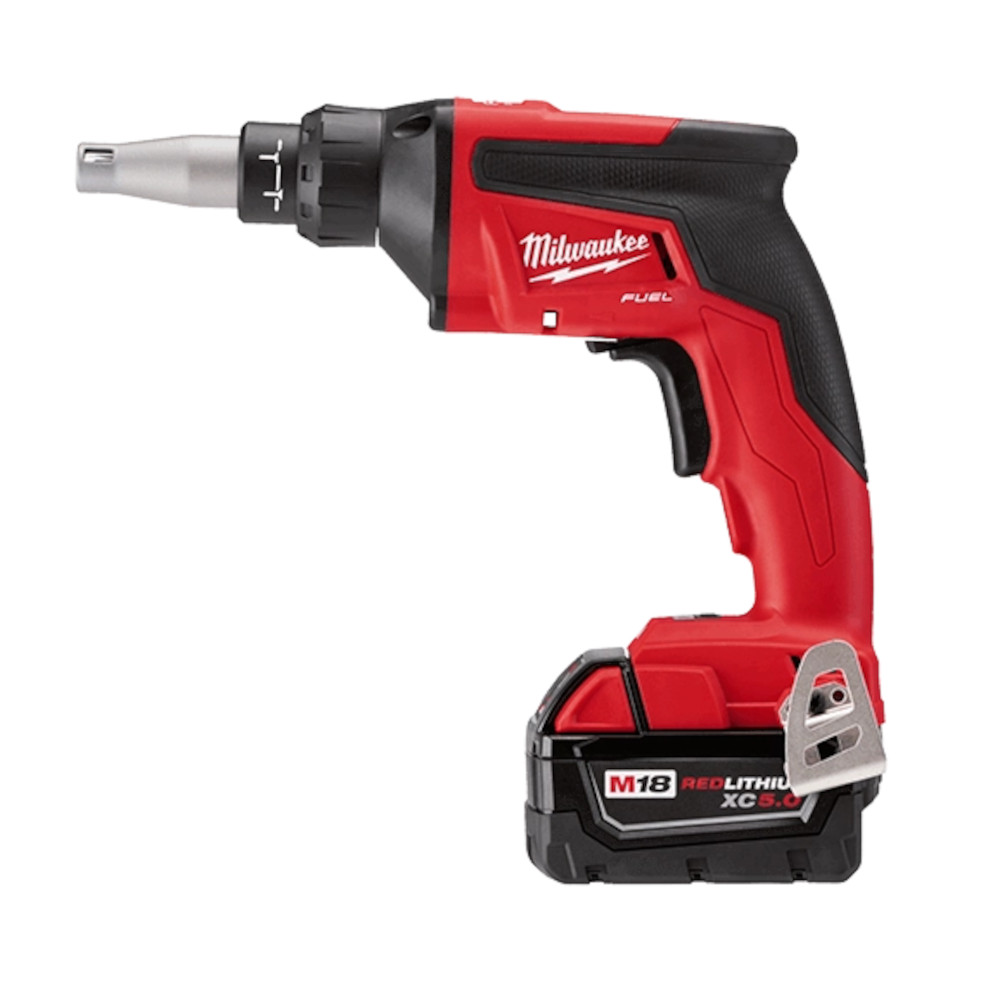 The M18 FUEL™ Drywall Screw Gun is FASTER THAN CORDED, features AUTO START functionality and delivers UP TO 3X LONGER RUN TIME than other cordless competitors. The POWERSTATE™ Brushless motor spins at 4,500 RPM’s resulting in faster productivity. With REDLINK PLUS™ Intelligence, Milwaukee’s AUTO START feature automatically starts the motor on contact with drywall providing less noise between screws and 3X longer run time. REDLITHIUM™ 5.0Ah batteries the drywall gun delivers up to an industry leading 64 sheets on one charge. The M18 FUEL™ Drywall Screw Gun delivers the balance and weight desired by professionals for all day use.
