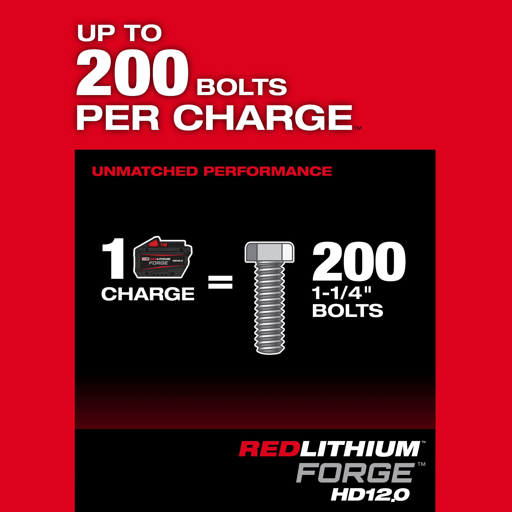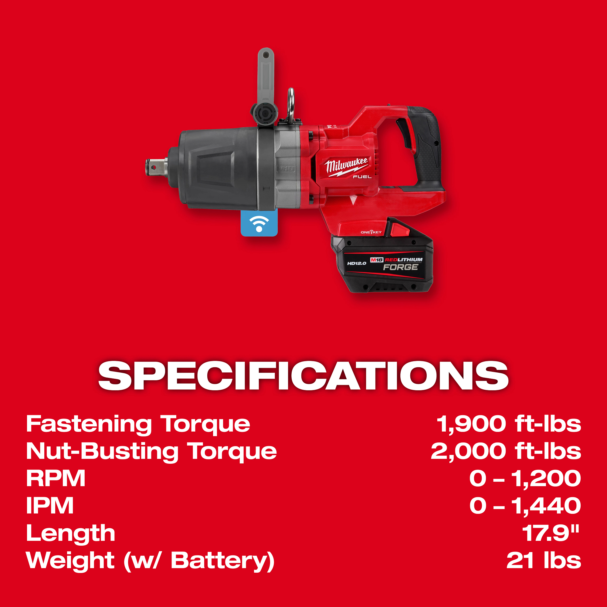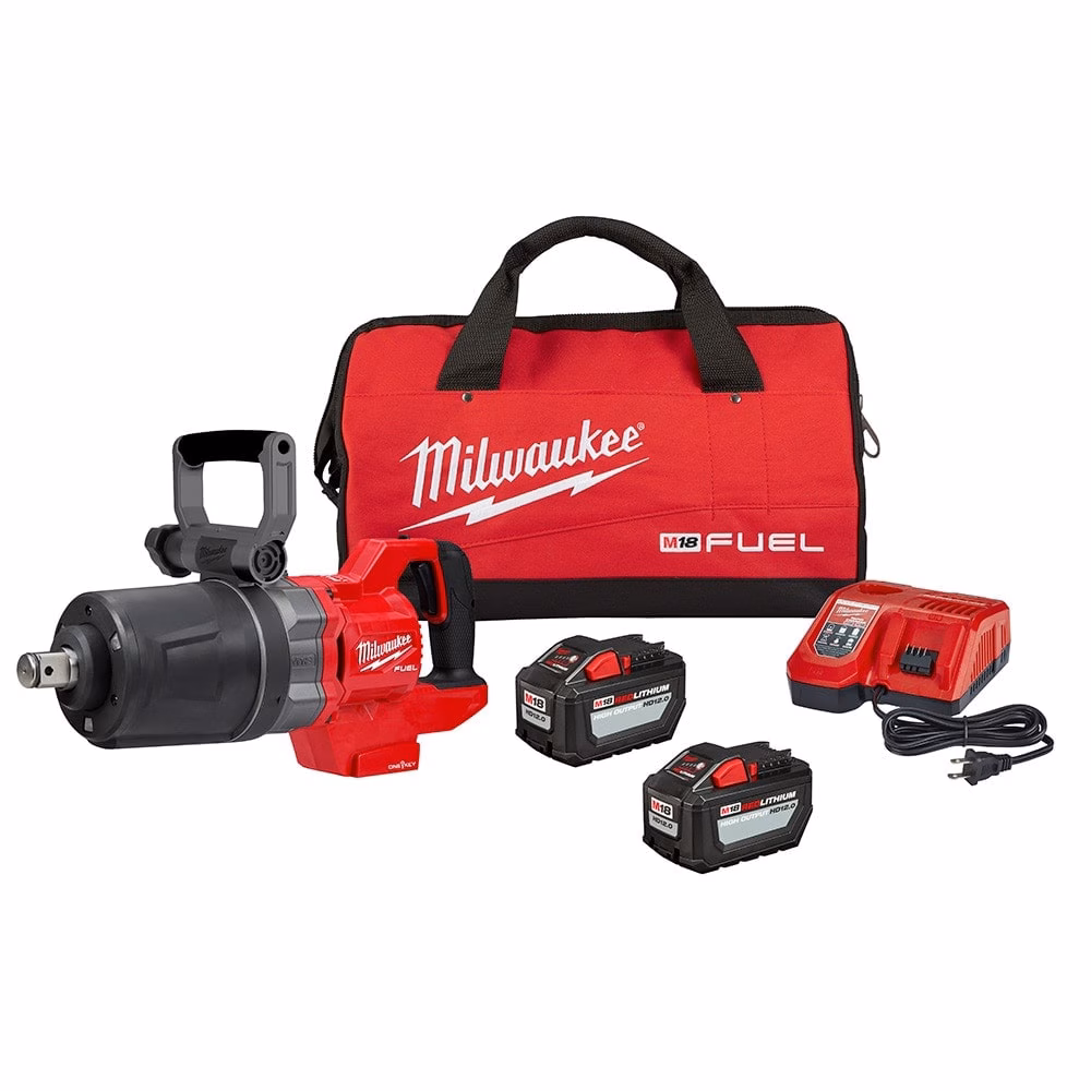 The MILWAUKEE® M18 FUEL™ 1″ D-Handle High Torque Impact Wrench w/ ONE-KEY™ Kit is the world’s first cordless 1” D-Handle High Torque Impact Wrench. The POWERSTATE™ Brushless Motor delivers up to 2,000 ft-lbs of nut-busting torque and 1,900 ft-lbs of fastening torque, making this the world’s most powerful cordless impact wrench, enabling you to complete the most demanding applications. With the runtime to install up to 200 1-1/4″ bolts on a single FORGE™ HD12.0 battery, this portable impact gun provides unmatched performance. The M18™ REDLITHIUM™ FORGE™ HD12.0 Battery Pack delivers 50% more power than the HIGH OUTPUT™ HD12.0 Battery, high-speed cooling for less downtime in high-demand applications, 35-minute supercharge to 80%, and the longest life vs REDLITHIUM™ batteries. The battery-powered impact wrench provides you with cordless convenience and eliminates the need for compressors, generators, cords, and hoses. With no compressor or hose, you have greater productivity and portability to complete applications not accessible with a pneumatic unit. This reduces your cost of ownership by lowering energy costs and eliminating routine maintenance on compressors and generators. The REDLINK PLUS™ Intelligence ensures you achieve maximum performance and protects the High Torque Impact Wrench against overloads, over-heating, and over-discharge. M18™ REDLITHIUM™ Battery Packs are compatible with all M18™ tools, providing this high torque cordless impact wrench with more work per charge and more work over the life of the pack. A patented battery isolation system manages high frequency vibrations, enabling battery movement that prevents damage and ensures a constant connection between the battery and tool when in use. The 4-Mode DRIVE CONTROL™ provides you with greater control over the output speed and power of the MILWAUKEE® High Torque Impact Wrench. The ONE-KEY™ Technology allows you to customize, track, and manage the impact wrench with the ability to set a repeatable torque output for maximum control.