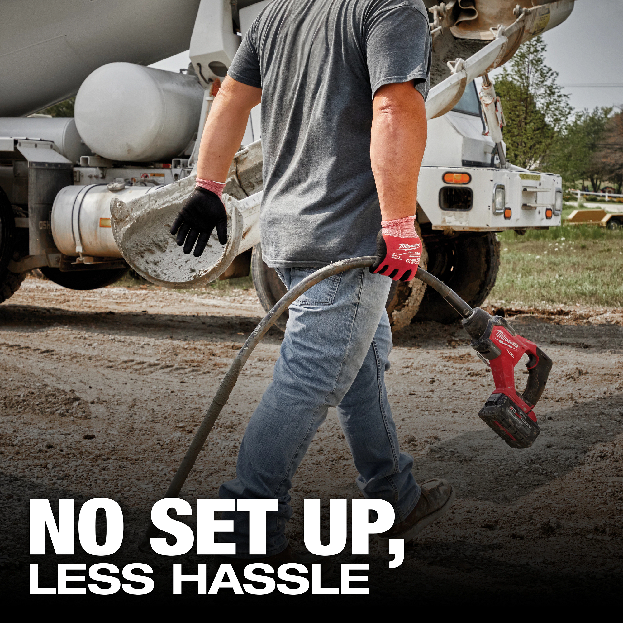 The MILWAUKEE® M18 FUEL™ 8 ft Concrete Pencil Vibrator generates up to 1.8 peak HP, with no setup and the ability to consolidate 20 yds³ of concrete per charge. The M18 FUEL™ 8 ft Concrete Pencil Vibrator generates 1.8 Peak HP, which is three times more powerful than competitive cordless pencil vibrators for concrete, all on the M18™ Cordless System. The POWERSTATE™ Brushless Motor delivers maximum sustained power and 12,500 VPM for optimal consolidation with a variable speed trigger. REDLINK PLUS™ Intelligence ensures unmatched levels of performance and protection. The M18™ REDLITHIUM™ HIGH OUTPUT™ XC6.0 Batteries (not included) deliver 50% more power while running 50% cooler than M18™ REDLITHIUM™ XC Batteries and are compatible with 200+ tools in the M18™ System.