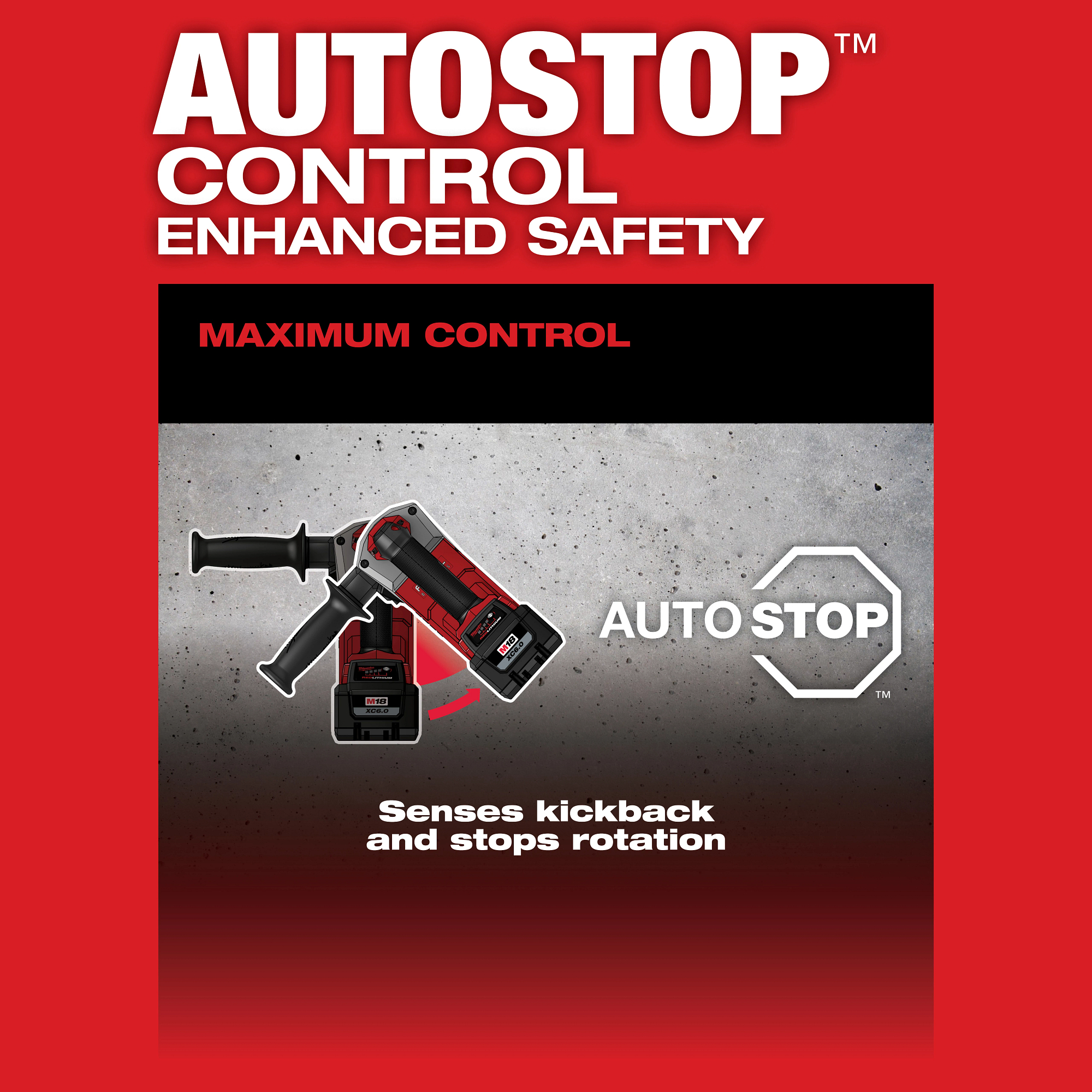 The MILWAUKEE® M18 FUEL™ 1″ SDS Plus Rotary Hammer is the next generation of cordless rotary hammers delivering ultimate jobsite performance and productivity. The M18 FUEL™ 1″ SDS Plus Rotary Hammer is the fastest drilling rotary hammer in its class, includes AUTOSTOP™ Control for enhanced safety, and can drill up to (125) 3/8″ x 2″ holes per charge when paired with the M18™ HIGH OUTPUT™ XC6.0 Battery. The POWERSTATE™ Brushless Motor delivers 2 ft-lbs of impact energy, 1,330 RPM, and 4,800 BPM, providing speed and power in the most demanding applications. REDLINK PLUS™ intelligence tool technology ensures maximum rotary drill performance and protects it from overload, overheating, and over-discharge. The M18™ REDLITHIUM™ HIGH OUTPUT™ XC6.0 Battery delivers 50% more power while running 50% cooler than the M18™ REDLITHIUM™ XC batteries. This hammer provides maximum control and enhanced safety with the AUTOSTOP™ Kickback Control. This feature prevents over-rotation if the tool gets bound up while drilling in rebar or hard aggregate. Milwaukee’s AVS Anti-Vibration System minimizes vibration for maximum comfort.
