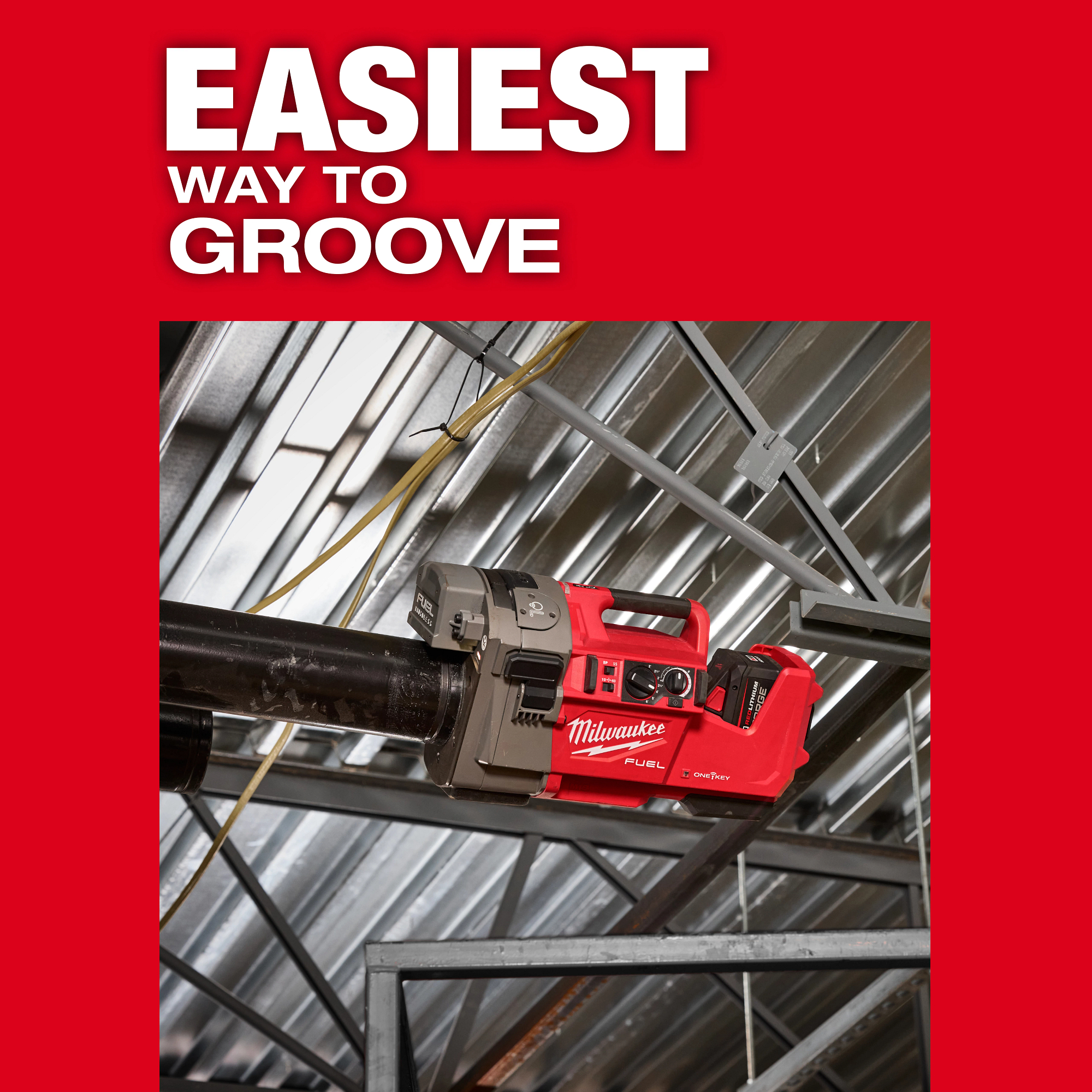 Our M18 FUEL™ RINGER™ Roll Groover for 2” – 6” Sch 10/40 is the industry’s first cordless Roll Groover, designed to optimize the productivity of on-site grooving. Delivering on the fastest setup and unparalleled portability, the M18 FUEL™ RINGER™ enables operators to work where it’s most convenient without the limitations of a cord. Driven by the power of M18 FUEL™, the RINGER™ eliminates the strain of traditional grooving, enabling pipe fitters the ability to work efficiently anywhere, even at the point of installation. With runtime up to 25 3” Sch 40 grooves per charge, the M18 FUEL™ RINGER™ stands up to the demands of a day on the jobsite. The easy-to-use groove controls enable the operator to simply select pipe material, size, and schedule to control groove depth. The groove depth offset control also provides the ability to adjust groove depth to the tolerance of a specific pipe batch, eliminating ratcheting & cranking, reducing guess and check, and enabling hands-free operation – making the M18 FUEL™ RINGER™ the easiest way to groove on-site.