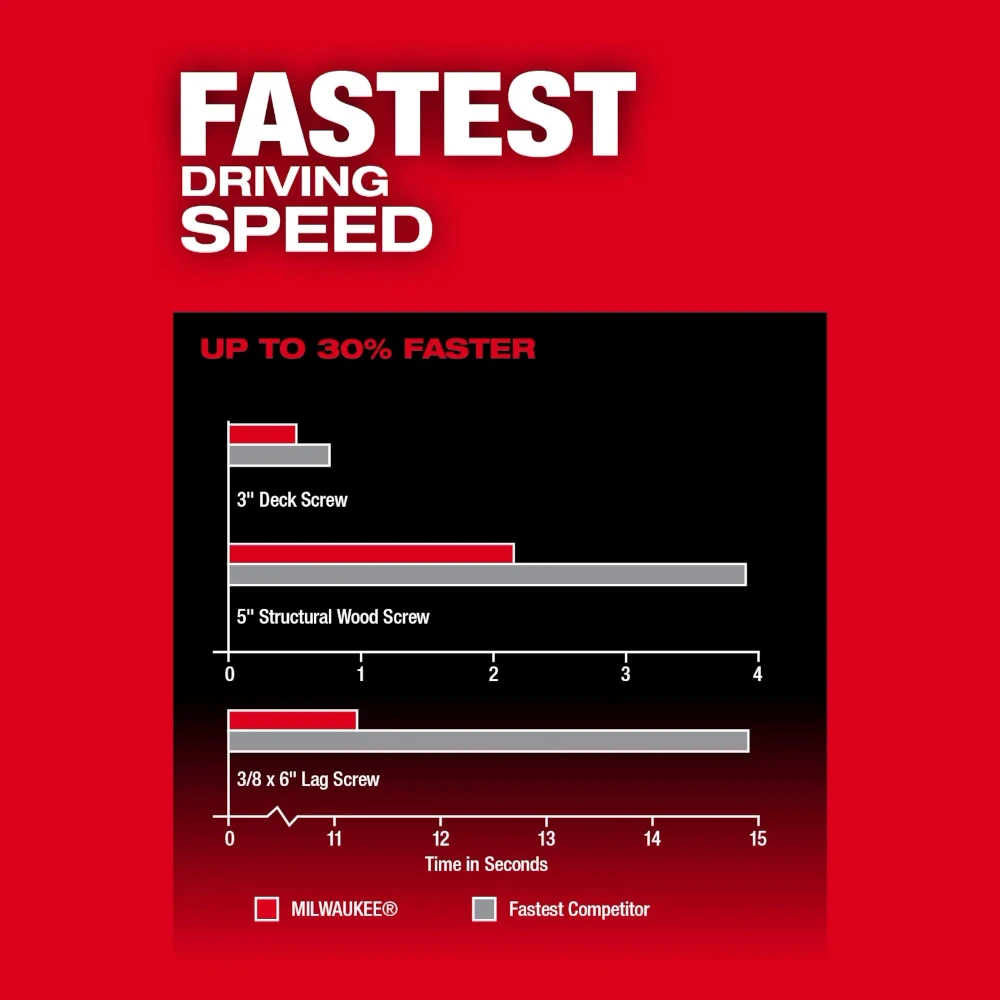 Our M18 FUEL™ ¼” Hex Impact Driver w/ One-Key™ is the MOST POWERFUL and FASTEST DRIVING impact driver, featuring ULTIMATE TRIGGER CONTROL. Our POWERSTATE™ Brushless motor delivers unmatched power for a full range of capabilities to complete the widest variety of applications. Increase productivity on the jobsite with the fastest driving speed of any impact driver without sacrificing power or control. REDLINK PLUS™ intelligence delivers ULTIMATE TRIGGER CONTROL by providing smooth acceleration for small fasteners to prevent stripping of screws or damaging of materials. Our M18™ REDLITHIUM™ Battery Packs deliver more work per charge and more work over the life of the pack. Our 4-mode drive control provides operators with greater control over output speed and power. The self-tapping screw mode provides faster installation time, shutting the hex driver down as soon as the fastener is seated to reduce damage to fasteners and materials. With ONE-KEY™, you gain the ability to Customize, Track and Manage your impact driver. ONE-KEY™ technology also allows you to save up to 4 task settings directly to the tool. If your tool is ever lost or stolen, its tracking functionality can lock it out to protect your investment. This new impact driver also features Tri-LED lighting, illuminating the area of work while eliminating shadows. Our M18 FUEL™ ¼” Hex Impact Driver is part of our M18™ system which is fully compatible with over 250+ solutions.