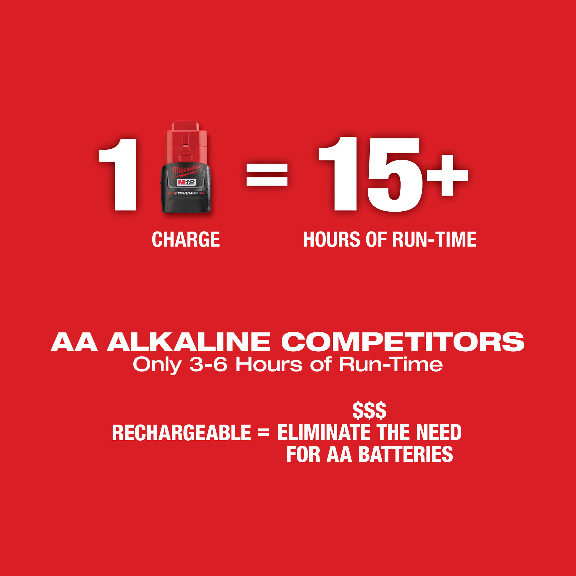 • All Day Runtime – 15+ Hours (With M12™ 3.0 CP Battery – Sold Separately)