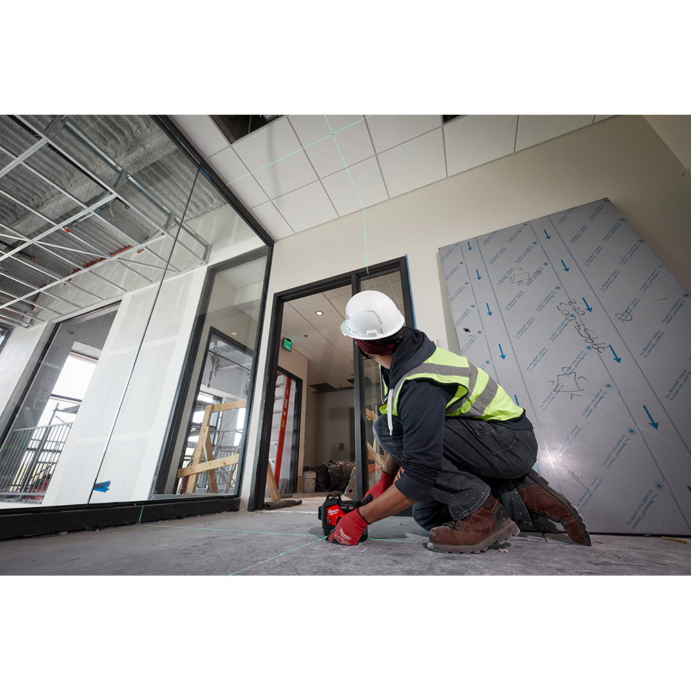 The M12 Green 360Ëš 3 Plane Laser Kit provides you with all day runtime and best visibility in its class. You’ll get 15+ hours of continuous runtime when paired with an M12 REDLITHIUM 4.0 XC Battery for ultimate productivity. The high-intensity green laser offers you superior visibility up to 250′ (diameter) for long-range applications. The three 360° planes include horizontal and two vertical lines for fast and easy alignment, leveling, squaring, and transfers allowing you to easily layout large spaces with one tool. The integrated bracket features a micro control and pivots on plumb point for easy and fast alignment. The amplified rare earth magnets provide a strong hold and will not slide on steel studs, while an integrated hang hole makes setup easy and efficient in any environment. As a part of the industry-leading MILWAUKEE M12 System, this 360Ëš laser level is compatible with all M12 Batteries.