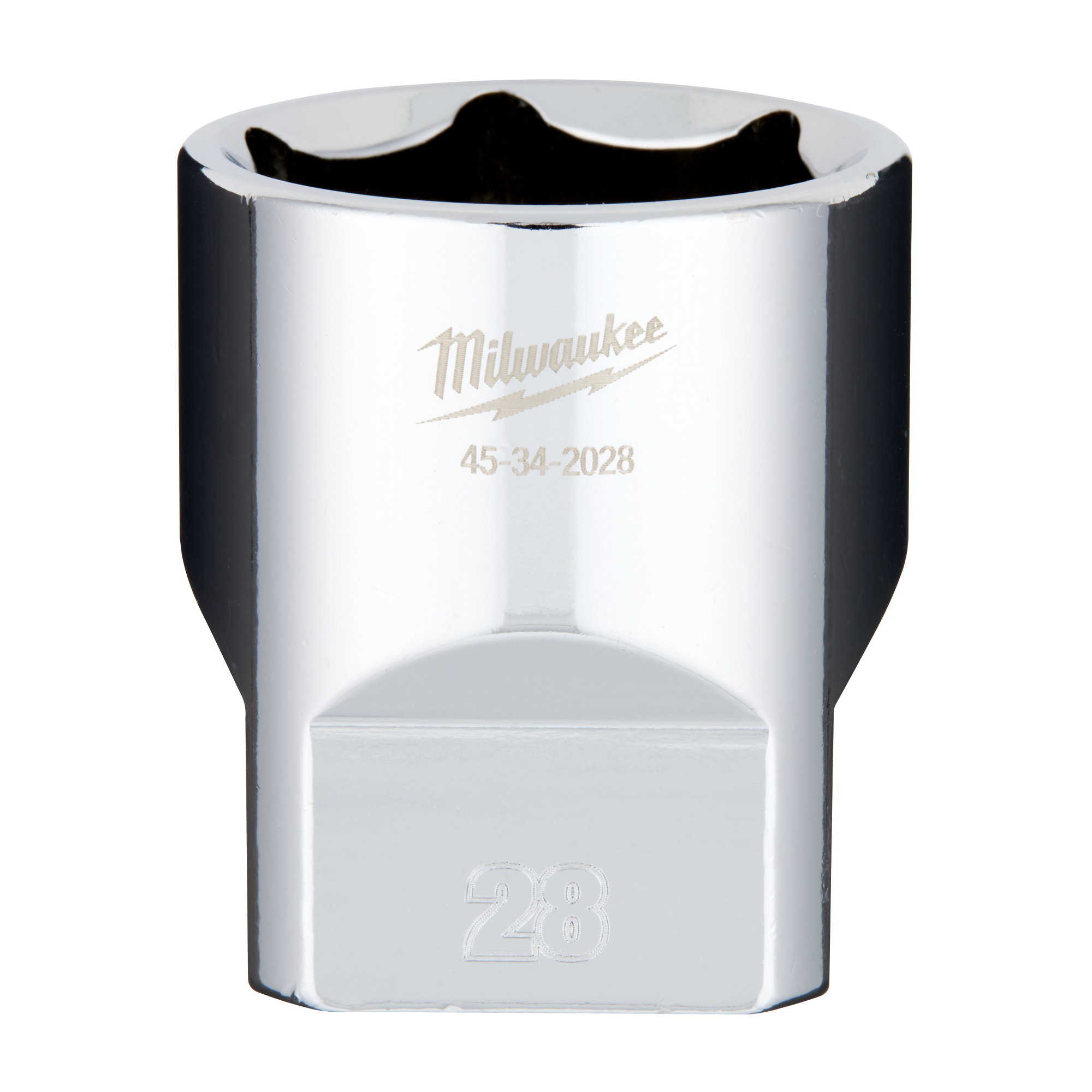 The MILWAUKEE® 1/2″ Drive 28MM Metric 6-Point Standard Socket with FOUR FLAT™ Sides was designed from the ground up to be part of the most versatile socket family. The 1/2” drive sockets feature an innovative design with four parallel flat sides, which deter rolling and are wrench-compatible. The metric socket sizes are stamped into the flats providing improved, easy-to-read visibility. This standard socket has been optimized geometry to reduce bolt rounding and stripping. Milwaukee backs their 1/2” Drive Metric Sockets with a lifetime guarantee.