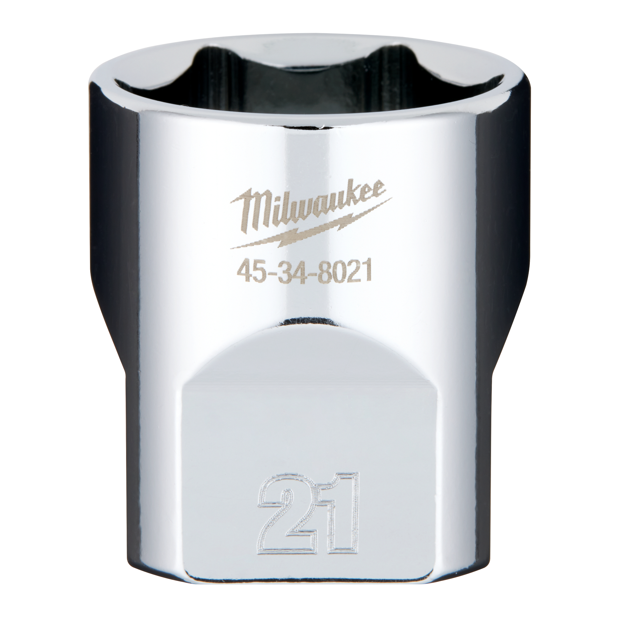 The MILWAUKEE® 3/8″ Drive 21MM Metric 6-Point Standard Socket with FOUR FLAT™ Sides was designed from the ground up to be part of the most versatile socket family. The 3/8” drive sockets feature an innovative design with four parallel flat sides, which deter rolling and are wrench-compatible. The metric socket sizes are stamped into the flats providing improved, easy-to-read visibility. This deep well socket has been optimized geometry to reduce bolt rounding and stripping. Milwaukee backs their 3/8” Drive Metric Sockets with a lifetime guarantee.