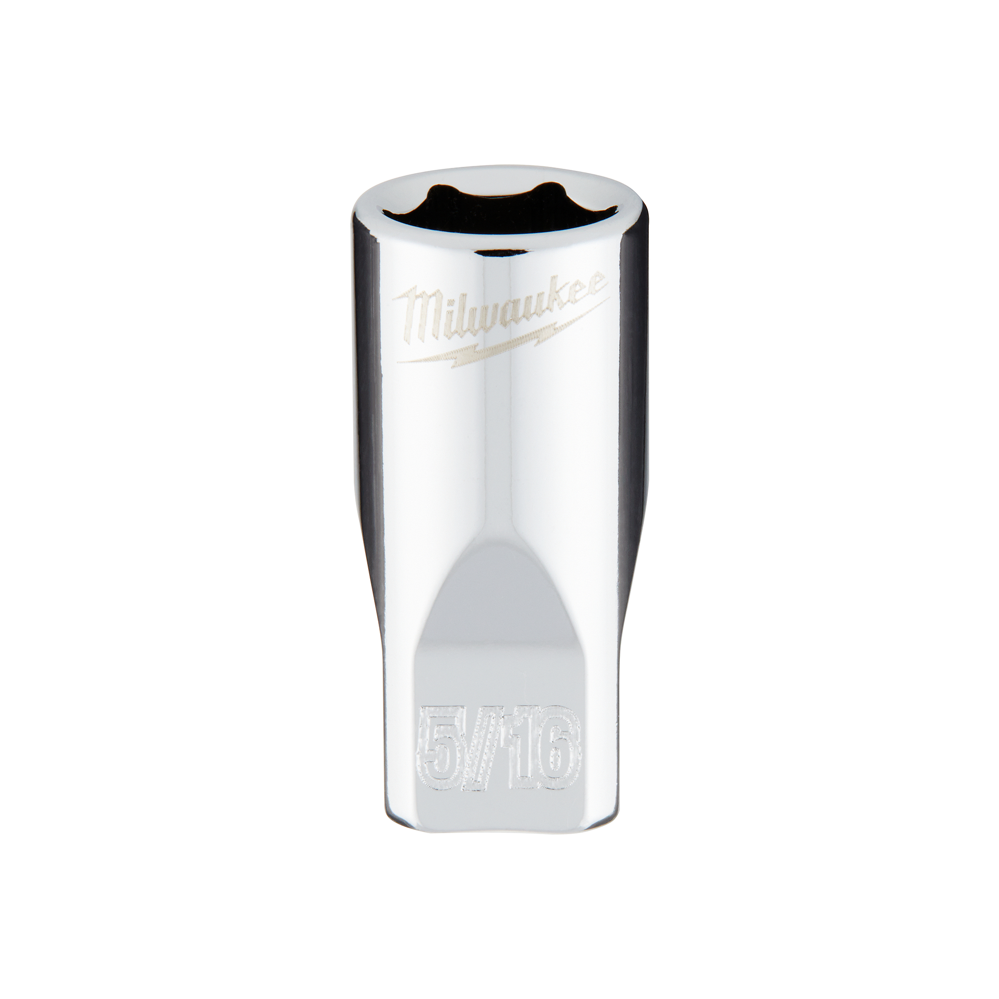 The MILWAUKEE® 1/4″ Drive 5/16″ SAE 6-Point Socket with FOUR FLAT™ Sides was designed from the ground up to be part of the most versatile socket family. The 1/4″ drive sockets are wrench-ready and feature an innovative design with four parallel flat sides to deter rolling. SAE socket sizes are stamped into the flats for better visibility. Optimized socket geometry helps reduce bolt rounding and stripping.