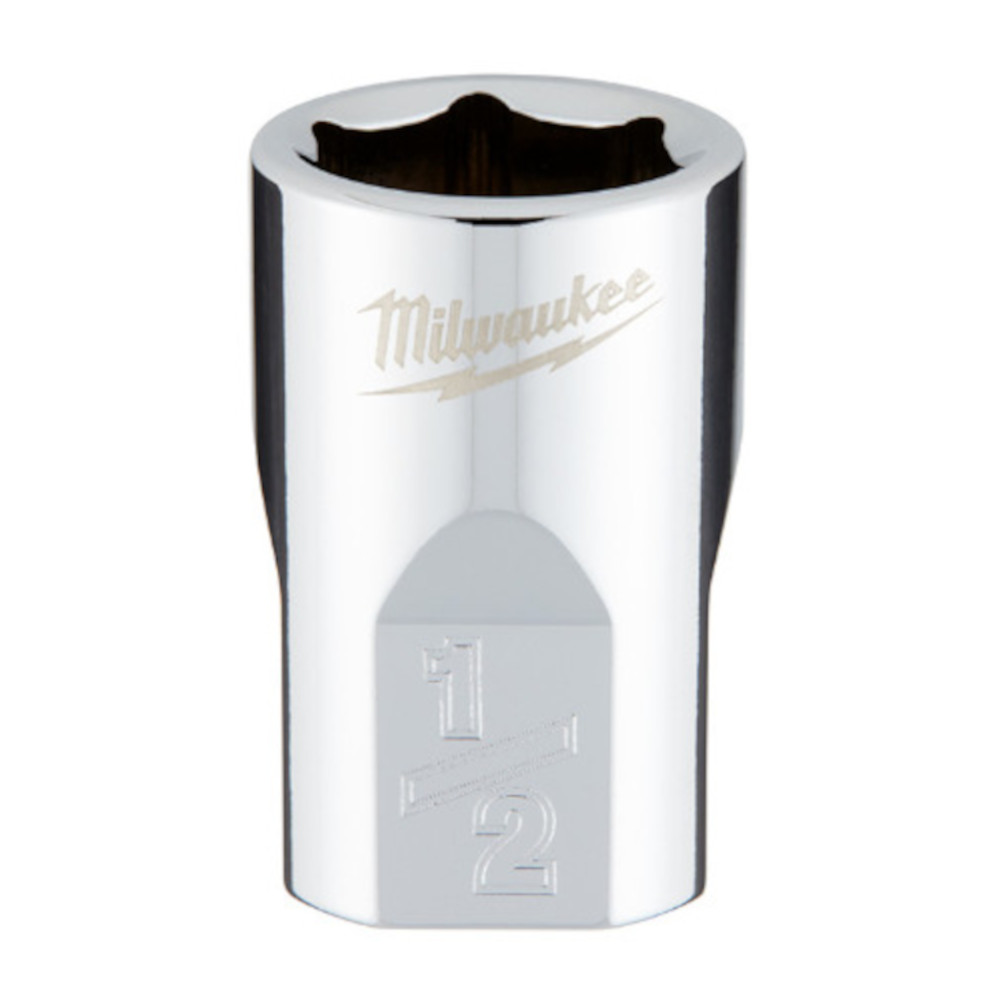 The MILWAUKEE® 3/8″ Drive 1/2″ SAE 6-Point Socket with FOUR FLAT™ Sides was designed from the ground up to be part of the most versatile socket family. The 3/8″ drive sockets are wrench-ready and feature an innovative design with four parallel flat sides to deter rolling. SAE socket sizes are stamped into the flats for better visibility. Optimized socket geometry helps reduce bolt rounding and stripping.