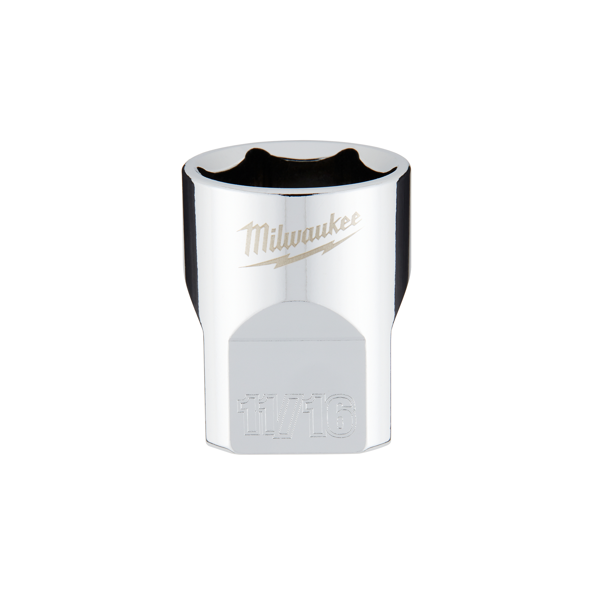 The MILWAUKEE® 3/8″ Drive 11/16″ SAE 6-Point Socket with FOUR FLAT™ Sides was designed from the ground up to be part of the most versatile socket family. The 3/8″ drive sockets are wrench-ready and feature an innovative design with four parallel flat sides to deter rolling. SAE socket sizes are stamped into the flats for better visibility. Optimized socket geometry helps reduce bolt rounding and stripping.